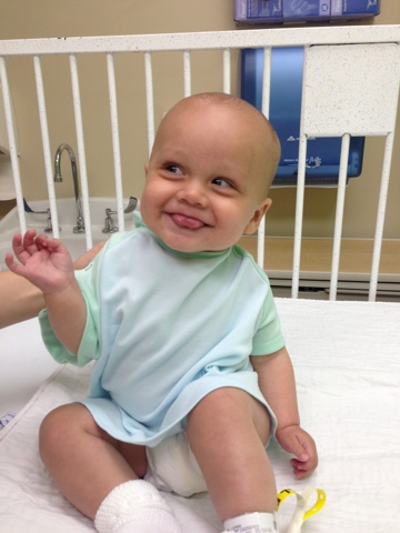Yesterday Kaden had to have a procedure called an Orcheoplexy done. One of his testicles didn't descend when he was developing. I was a nervous wreck because he had to be under anesthesia. I was also nervous because he couldn't eat or drink after midnight the night before. I was worried he would wake up hungry and be super cranky until our appointment at 9:30. I asked everyone to be praying for those two things. God is good! Everything went great! He slept well the night before and didn't cry once as we drove to the hospital, waited in the waiting room, got checked in, etc. He did so good! He was the cutest little patient. We thought his left testicle was non functioning, maybe twisted and would be removed but the doctors found and pulled down a healthy functioning one! Good news! Thank you Lord! Recovery was rough on Kaden as he came out of anesthesia. He was really tired and super cranky! We did our best to comfort him the rest of the day. Today he is still sleepy but much happier. So glad that's over with!